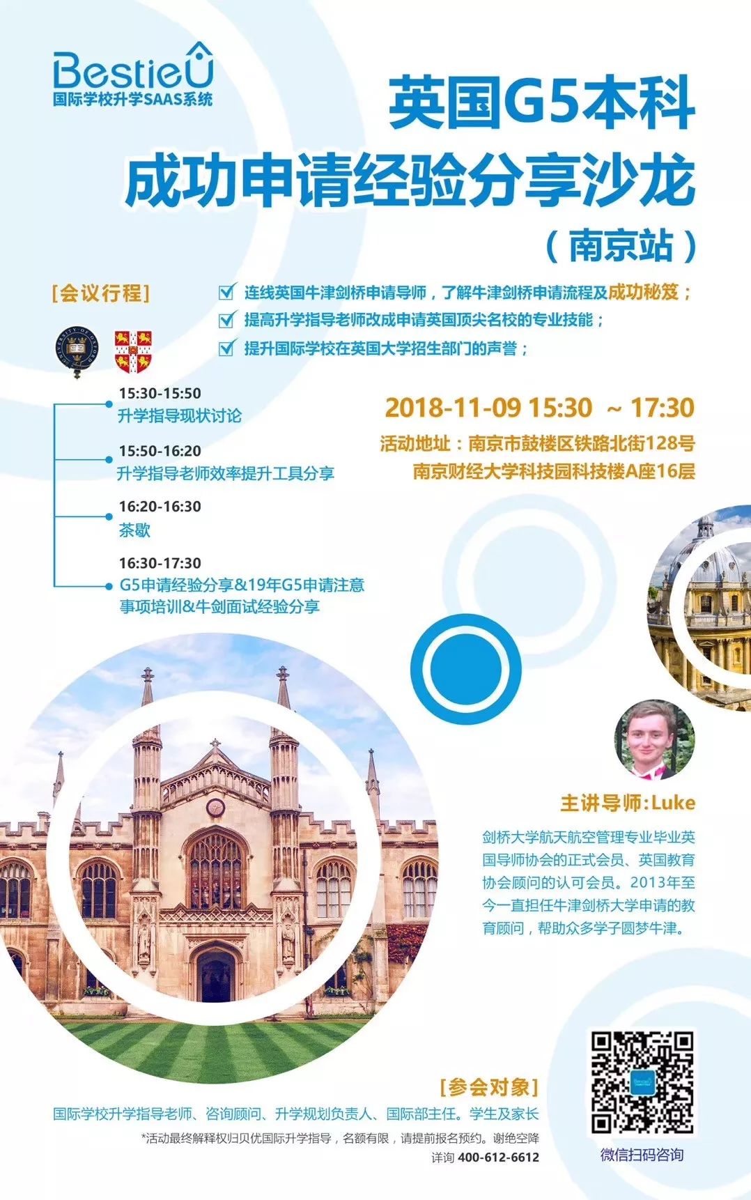 11月16日,英国时间8:30—9:30,北京时间16:30—17:30,由Luke老师带领我们分享G5本科成功申请经验(后续跟进);