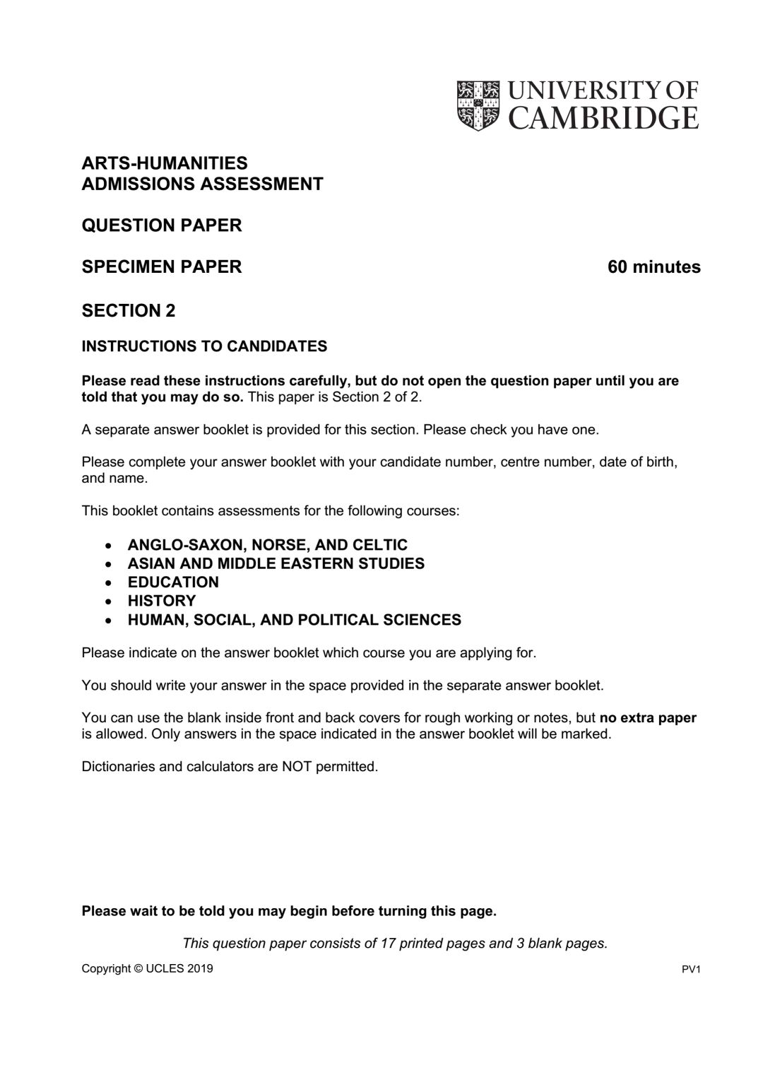 篇幅有限,本次展出的是pre-interview assessment中针对人文社会政治专业申请者开设的HSPSAA考试,针对历史相关专业申请者开设的HAA考试。