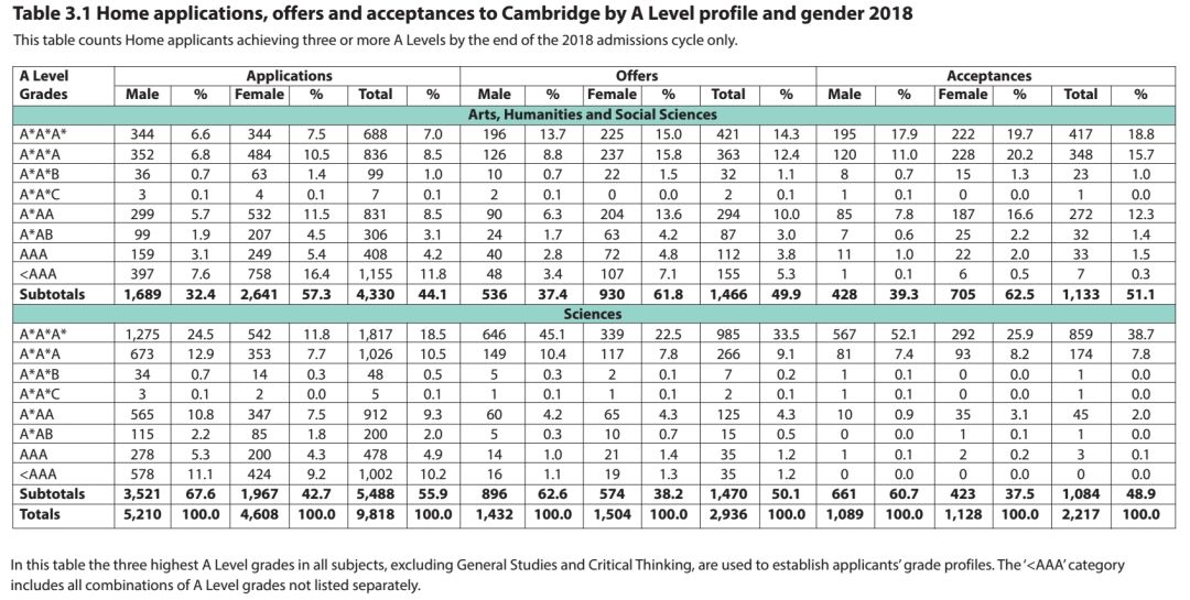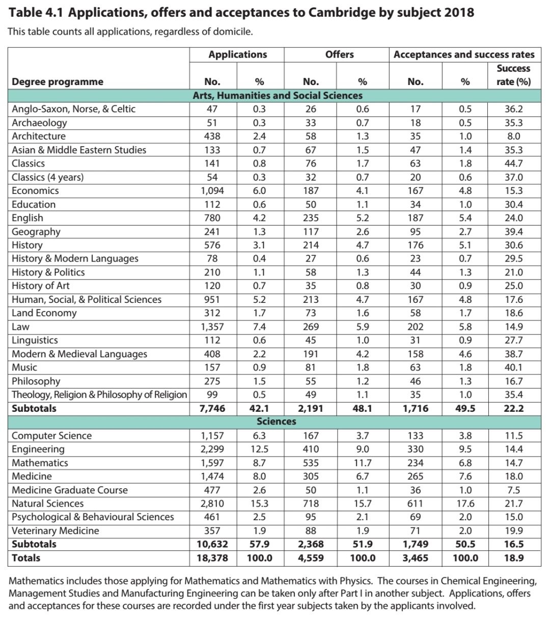 由于不同专业开设申请人数和可提供席位不一,所以剑桥大学的数据统计中,各专业课程的录取情况是对自己申请课程竞争力的很好参考。