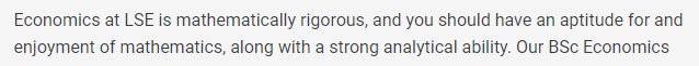 LSE的经济学课程在数学上是严谨的,院校希望入读的学生应该有数学方面的天赋并且热爱数学,同时具有极高的分析能力。