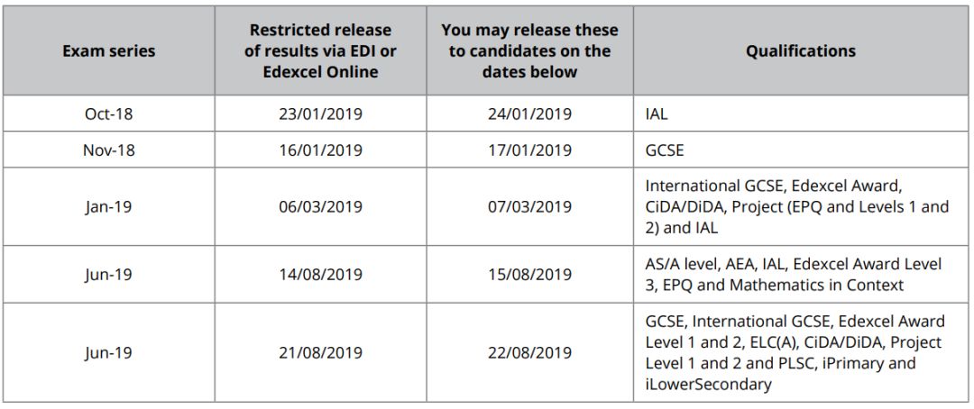 当然,不同考试局具体放榜的时间会略有区分,这里小U以国内考试选择比较多的CIE考试局(现在的CAIE)和Edexcel考试局的放榜情况为例: