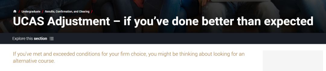 就像UCAS官网所描述的那样,当你成绩超过预期,比你第一志愿有条件录取要求还高出很多的适合,使用调剂可能是一个不错的选择,调剂录取可以帮助这些小伙伴寻找入学要求更高的课程或者院校。