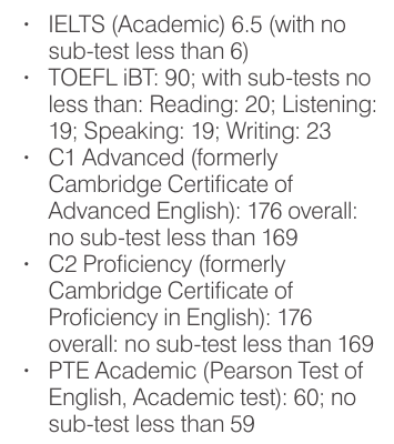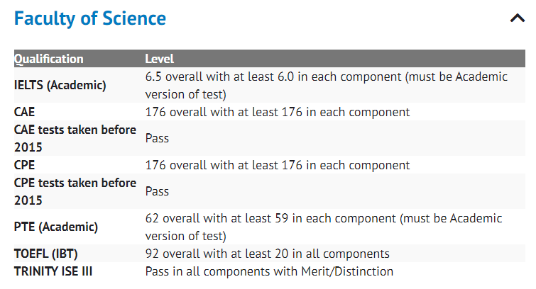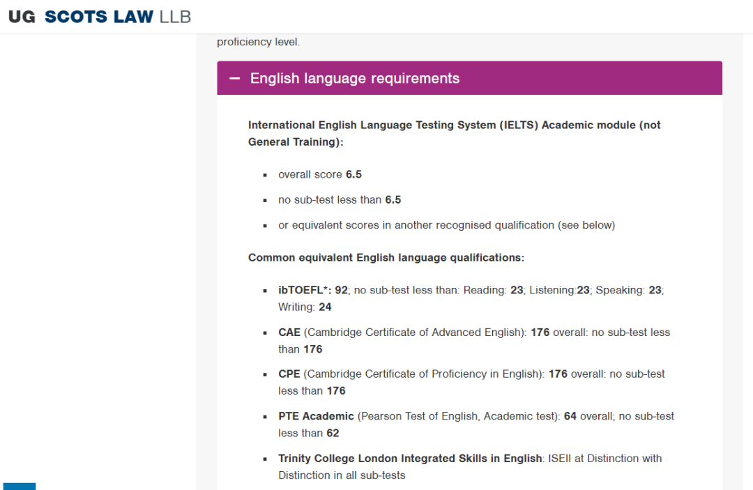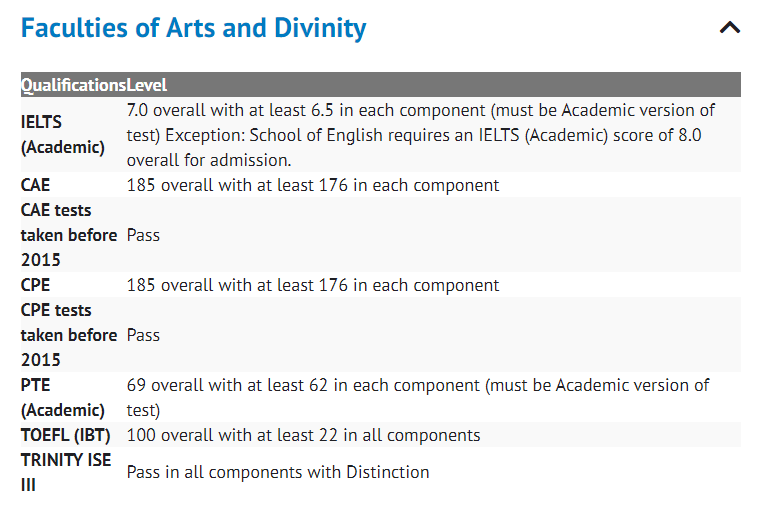 圣安德鲁斯大学的语言门槛以学院为区分,故如下展示信息也以不同faculty为基准: