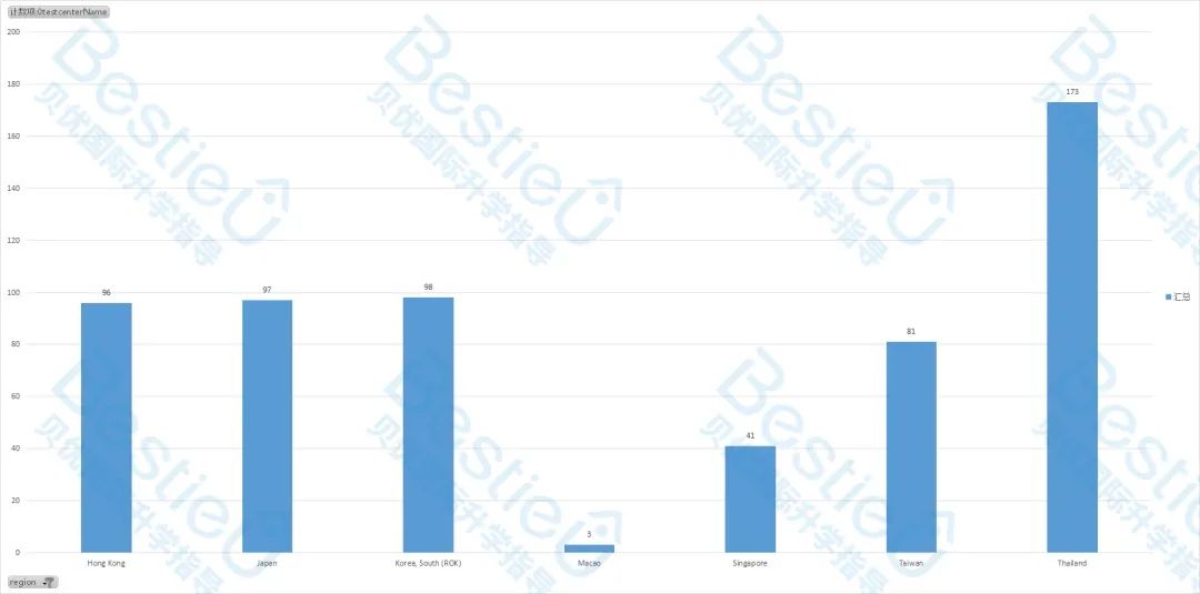 下方数据统计了中国(香港地区/台湾地区/澳门地区)、日本、韩国、新加坡、泰国五个亚太国家可报名SAT考试场次的汇总数据。