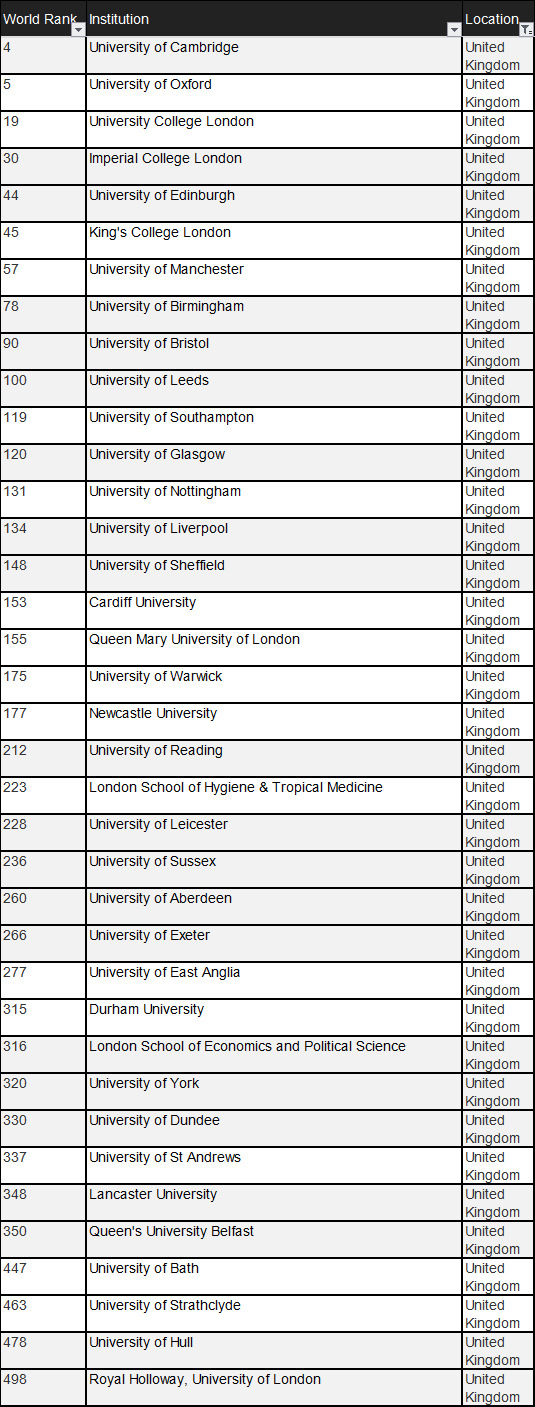 下面就是本次世界大学排名中,位于世界TOP100的院校: