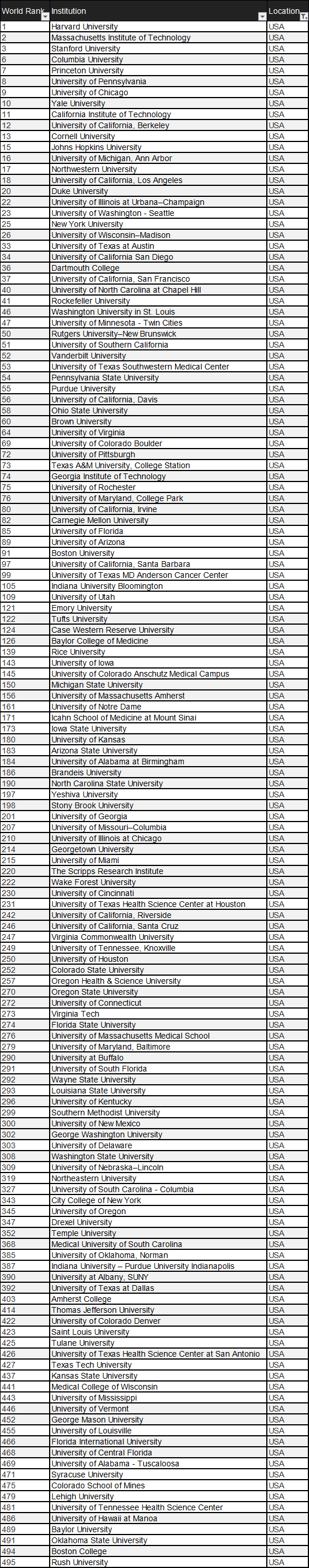 截止至2019年,该排名已经扩大到从全球2万所大学中精选出前2000名进行排名,也让该排名成为排名规模最大的世界大学排名之一。