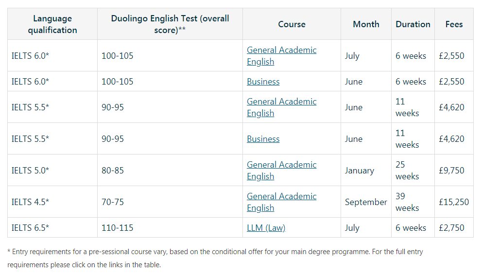 主课Offer为雅思总分7.0,申请8周语言课程的要求: