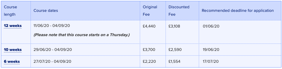 QMUL伦敦玛丽女王大学9周线上语言班课程申请截止日期为2020年7月7日周二北京时间17点,开课日期为7月9日。请还没有收到9周语言课Offer的尽快联校方,QMUL会尽快帮学生拿到Offer。