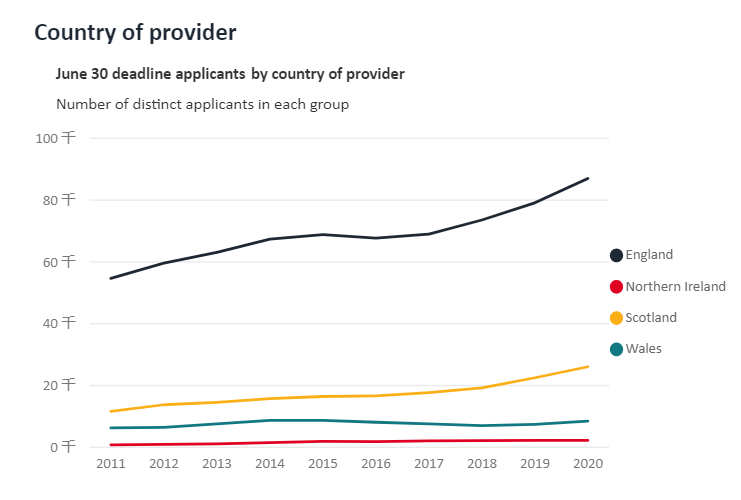 UCAS也结合了6月30日这个deadline,整理了此deadline之前UCAS相关申请数据,并于上周四(7月9日)对外公布。
