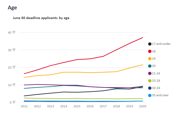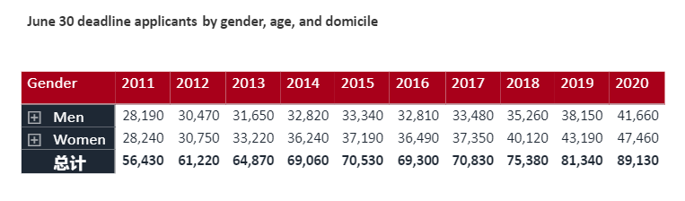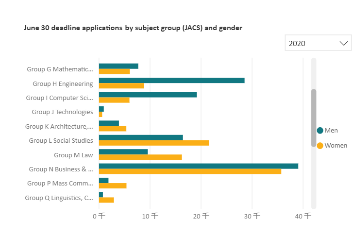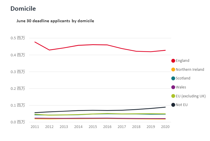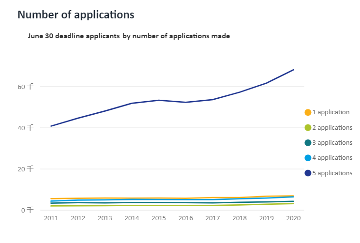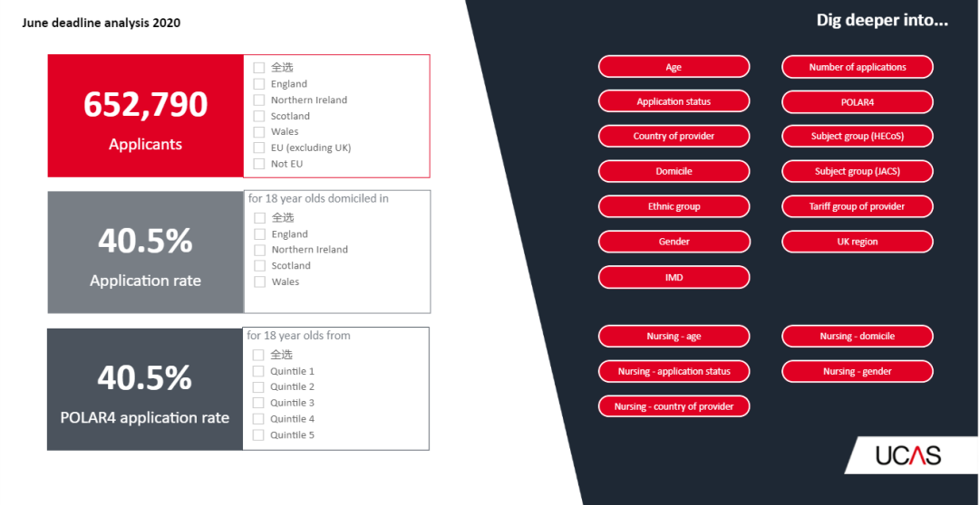 虽然没有具体的录取数据,考虑到6月30日这个deadline的特殊性,本次UCAS统计公布的信息已经基本涵盖了2020常规申请批次的大部分申请数据,其多维度的数据展示也极具参考。