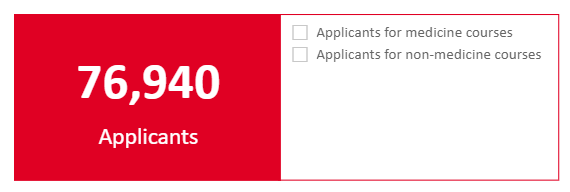 在10月15日截止日期前递交的申请中,有53270名学生选择同时申请5所学校/课程,选择4所学校/课程的申请者人数第二多,共14840人。