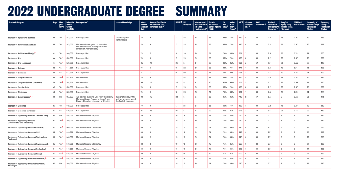 墨尔本大学直接通过具体A-level要求展示相关录取门槛信息,大家可以直接参考,故这里不再做额外说明。