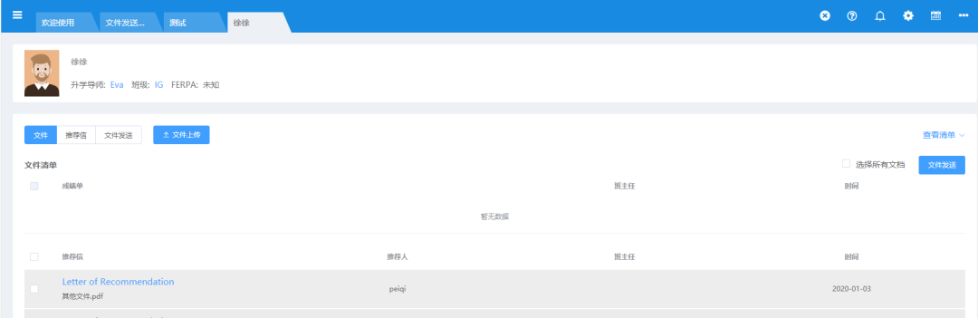 ⊙【文件发送】老师同一学校上传多封推荐信,页面显示优化