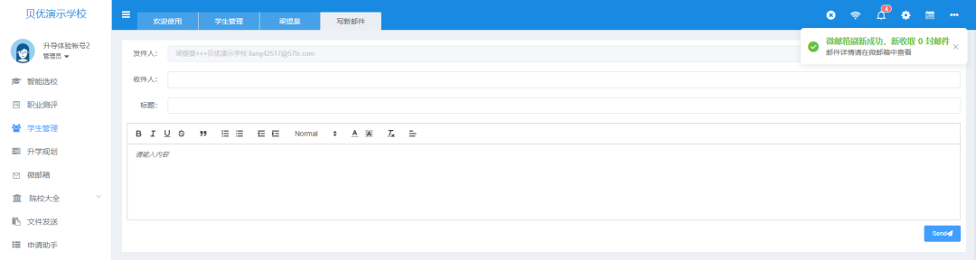 其次是“发送新邮件”:如果您有邮件发送需求,将直接可以在【微邮箱】界面完成相关操作。